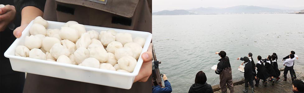 「海のゆりかご」として無事成長することを願い、次々に海に投入しました。