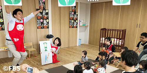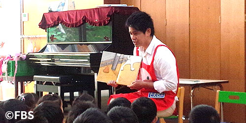 2012年にスタートした「えほんでGO! 」では、アナウンサーが保育園・幼稚園での絵本読み語りボランティアを実施しました。今までに福岡・佐賀の延べ100園以上を訪問しています。