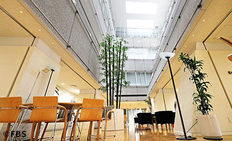 2005年に新築・移転した現在の本社ビルは、震度6強程度の地震や建物にひびが入っても放送が維持できる程度の強度で設計されています。また、新型コロナウイルス対策として、館内の共有スペースである廊下や壁面、トイレ、建具などにウイルスを不活性化する光触媒コーティング塗装を施工しています。
